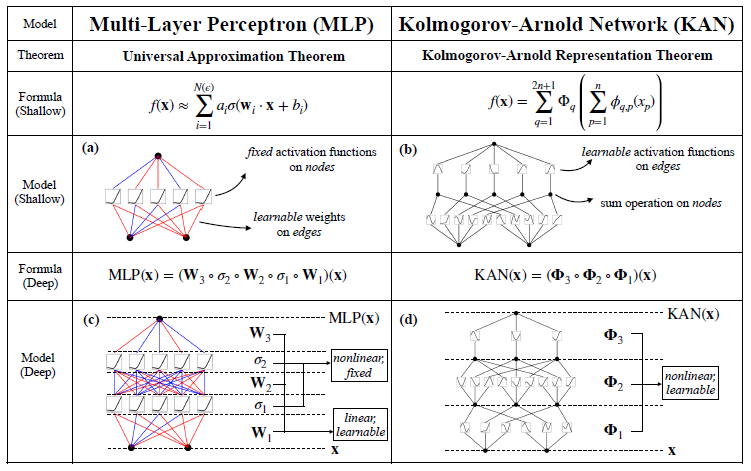 The table below outlines the main differences between KANs and MLPs.