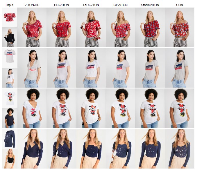 The figure below shows the results of a cross-dataset evaluation of different models that were trained on the VITON-HD dataset and tested on the Dress Code dataset. OOTDiffusion generates more realistic outfitted images and preserves many more garment details.